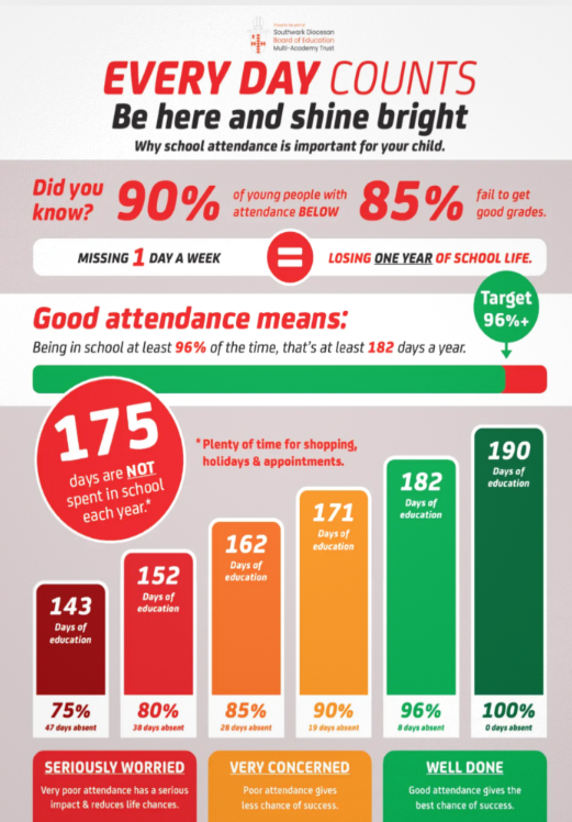 Parents have a legal responsibility to ensure their child is in school every day and arrives on time.
