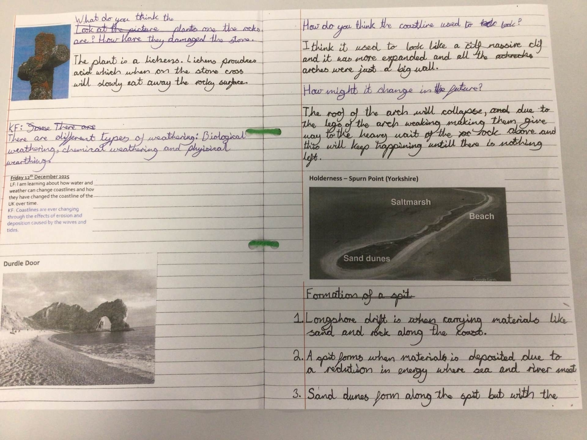 In Year Six, the children learnt about the structure of the United Kingdom and how its shape and geography have changed over thousands of years. The children explored how the landscapes have changed and had a chance to predict the future. They looked at different types of weathering and carried out simple investigations. They identified coastal landforms created by waves such as stacks, stumps, caves, arches, coves, beaches and cliffs.