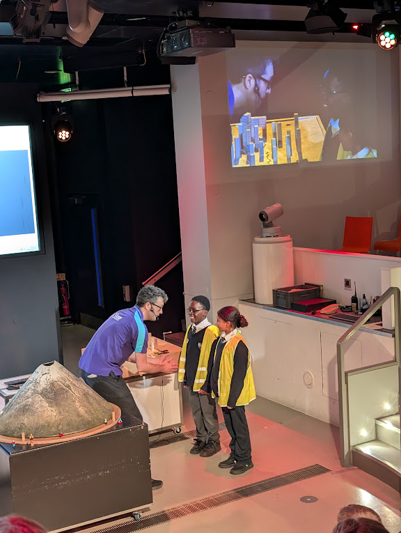 Next, we took part in a brilliant workshop called “Emergency! Earthquakes and Volcanoes”. We learned about how earthquakes are measured and what causes them beneath the Earth’s surface. Some of us even volunteered to create our own “earthquakes” using special equipment so we could measure the vibrations just like real scientists! We helped save a village near an active volcano and are now certified volcano experts according to the Natural History Museum.