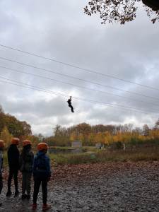 Today, it is another jam packed day with the children engaging in zip-wire, trapeze, tunnel trail and problem solving. This evening there will be a game show activity.